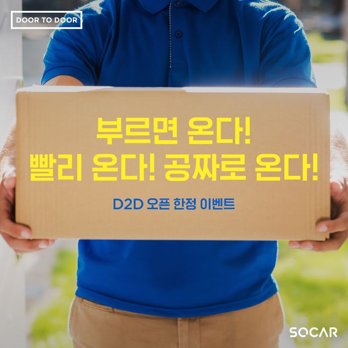 쏘카 ‘도어투도어(D2D)’ 서비스는 지난 6월 쏘카가 카셰어링 업계 최초로 선보인 공유차량 딜리버리 서비스로, 이용자가 지정한 시간과 장소에 원하는 차종을 가져다주는 서비스다.