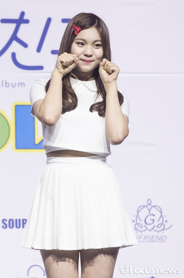 (서울=포커스뉴스) 11일 오후 서울 광진구 예스24 라이브홀에서 열린 걸그룹 여자친구의 첫번째 정규앨범 'LOL' 발표 쇼케이스에 참여한 멤버 엄지가 포토타임을 갖고 있다.