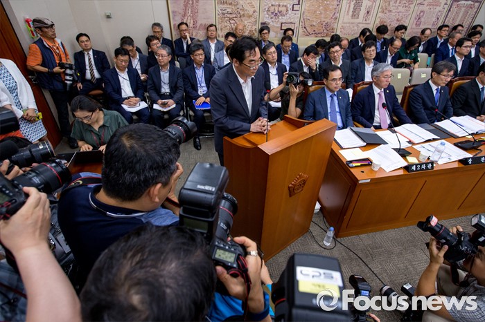 (서울=포커스뉴스) 민중을 개, 돼지로 표현한 발언으로 비판을 받고 있는 나향욱 교육부 정책기획관이 11일 오후 서울 여의도 국회에서 열린 교육문화체육관광위원회 전체회의에 참석해 질의응답 하고 있다.