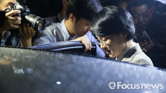 (서울=포커스뉴스) 국민의당 선거 홍보비 리베이트 수수 의혹 사건 관련 사전구속영장이 발부됐던 박선숙 국민의당 의원이 12일 오전 서울 마포구 서부지검에서 구속영장이 기각돼 귀가하고 있다.