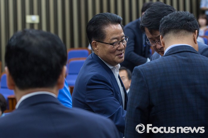 (서울=포커스뉴스) 박지원 국민의당 비상대책위원장이 12일 오전 서울 여의도 국회에서 열린 의원총회에 참석해 동료의원들과 악수하고 있다.