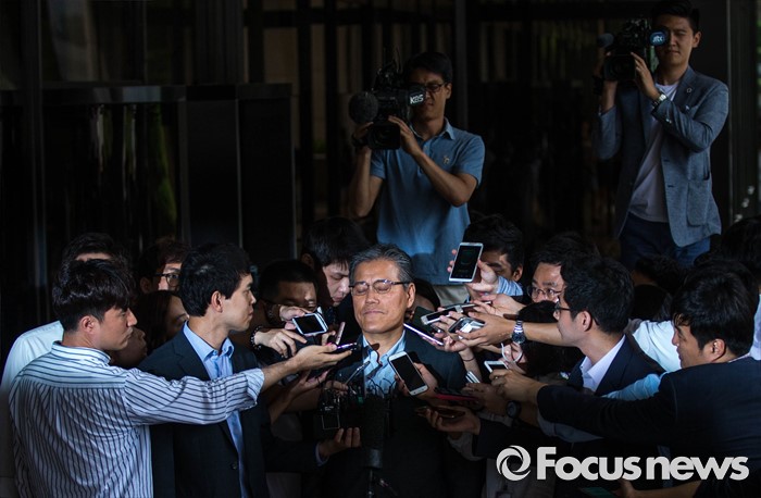 (서울=포커스뉴스) 롯데홈쇼핑 강현구 대표이사가 12일 오전 서울 서초구 서울중앙지검으로 출석하고 있다. 강 대표이사는 롯데홈쇼핑의 사업권을 재승인 받는 과정에서 당시 미래창조과학부 등에 금품을 로비했다는 의혹을 받고 있다.