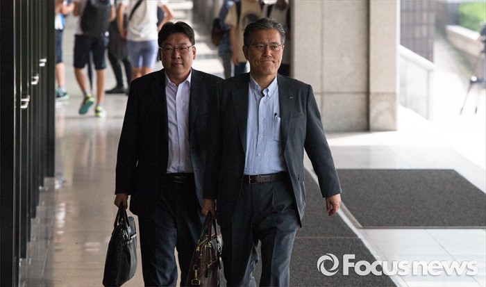 (서울=포커스뉴스) 롯데홈쇼핑 강현구 대표이사가 12일 오전 서울 서초구 서울중앙지검으로 출석하고 있다. 강 대표이사는 롯데홈쇼핑의 사업권을 재승인 받는 과정에서 당시 미래창조과학부 등에 금품을 로비했다는 의혹을 받고 있다.