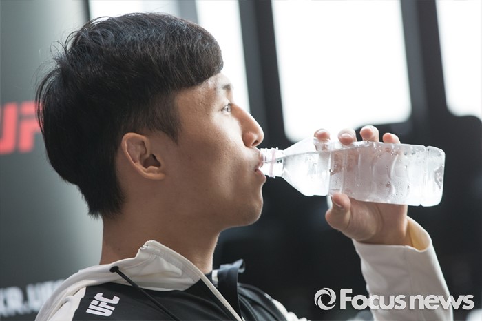 (서울=포커스뉴스) 지난 9일 티아고 타바레스(31, 브라질)를 1라운드 2분 42초에 TKO로 제압하고, UFC 3연속 KO 승리라는 쾌거를 이루고 귀국한 ‘코리안 슈퍼보이’ 최두호가 선수가 12일 오전 서울 여의도 리복 센티널 IFC에서 기자회견을 하고 있다.