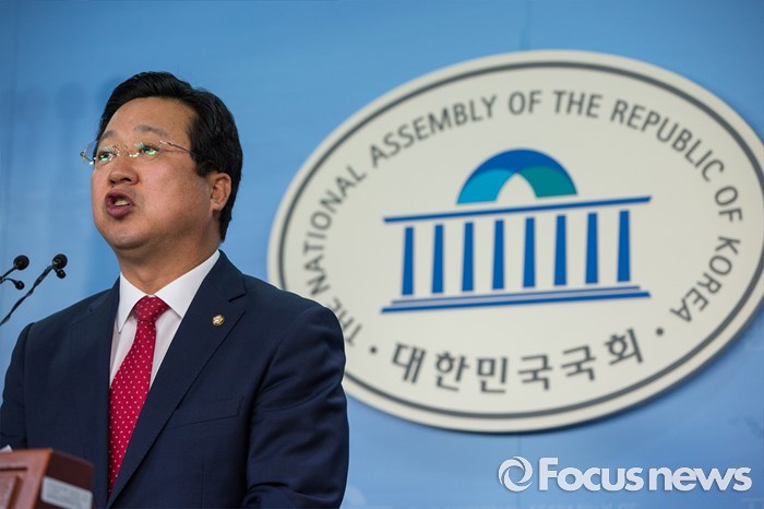 (서울=포커스뉴스) 이장우 새누리당 의원이 12일 오전 서울 여의도 국회에서 오는 8월9일 전당대회 최고위원 선거 출마를 선언 하고 있다.