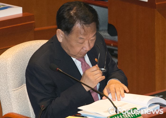 (서울=포커스뉴스) 12일 오전 서울 여의도 국회에서 2015회계연도 결산을 위해 열린 예산결산특별위원회 전체회의에 참석한 유일호 경제부총리 겸 기획재정부 장관이 자료를 살펴보고 있다.