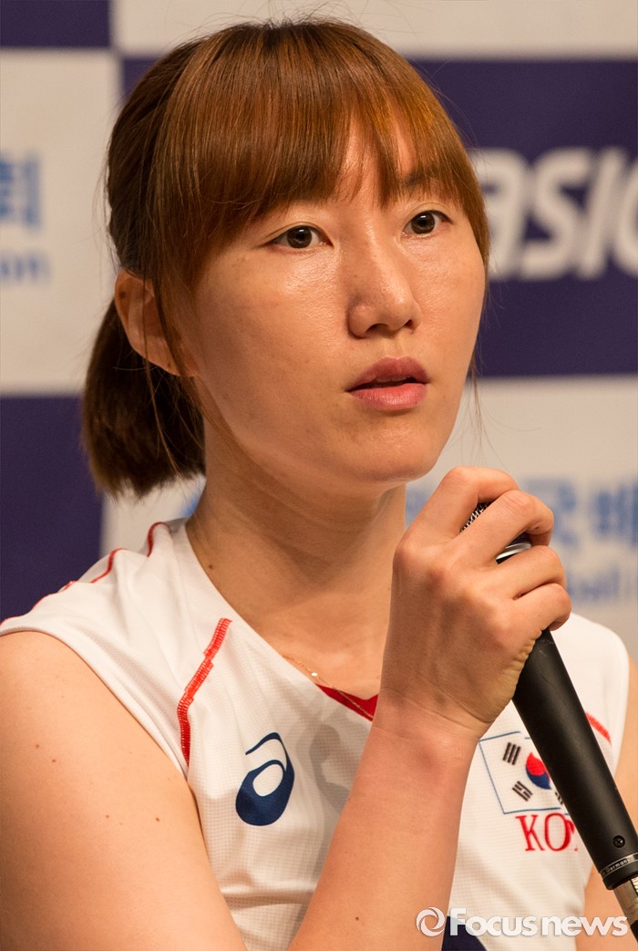 (진천=포커스뉴스) 12일 오전 충북 진천 선수촌 대강당에서 열린 '대한민국 여자배구 국가대표선수단 기자회견'에 참석한 남지연 선수가 각오를 밝히고 있다. 이날 기자회견을 가진 여자배구 선수단은 리우올림픽을 대비해 23일 네덜란드로 전지훈련을 떠날 계획이다.