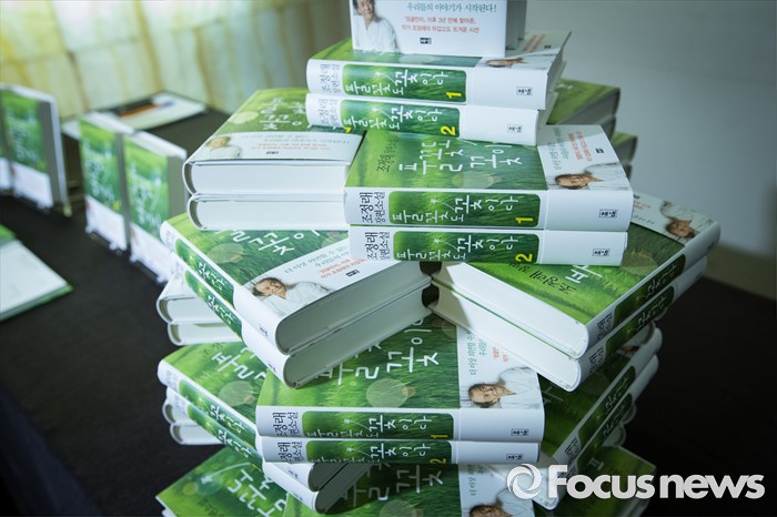 (서울=포커스뉴스) 12일 오전 서울 중구 한국프레스센터에서 열린 조정래 작가의 신간 출간기념 기자간담회에 조 작가의 신간인 '풀꽃도 꽃이다' 책들이 놓여져 있다.