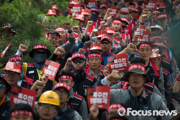 (서울=포커스뉴스) 고강도 구조조정에 반발하고 있는 대형 조선3사 노조들이 연대투쟁을 모색하며 투쟁수위를 높여가고 있다.