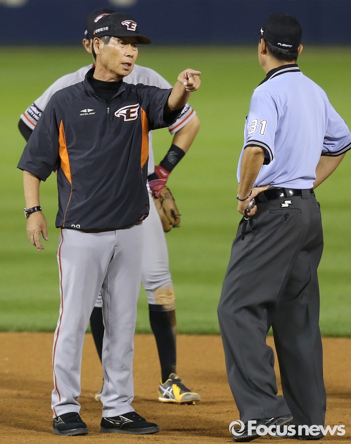 항의하는 김성근 감독