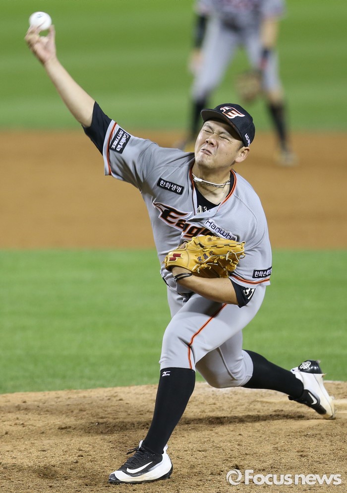 (서울=포커스뉴스) 12일 서울 잠실구장에서 열린 2016 프로야구 한화-LG 경기 6회말 한화 투수 송창식이 투구하고 있다.