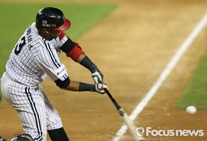 (서울=포커스뉴스) 12일 서울 잠실구장에서 열린 2016 프로야구 한화-LG 경기 6회말 무사 1루에서 LG 히메네스가 좌전 안타를 치고 있다.