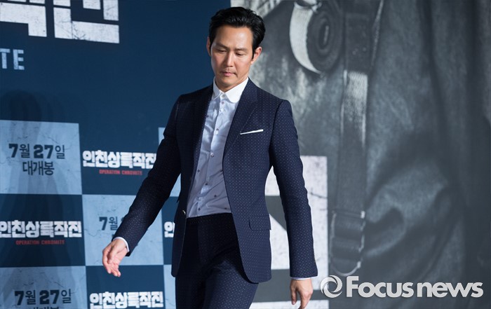 (서울=포커스뉴스) 13일 오전 서울 영등포구 콘래드 서울 호텔에서 열린 영화 '인천상륙작전' 기자간담회에 참석한 배우 이정재가 포토타임을 위해 이동하고 있다.