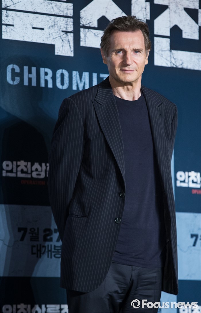 (서울=포커스뉴스) 13일 오전 서울 영등포구 콘래드 서울 호텔에서 열린 영화 '인천상륙작전' 기자간담회에 참석한 배우 리암 니슨이 포토타임을 갖고 있다.