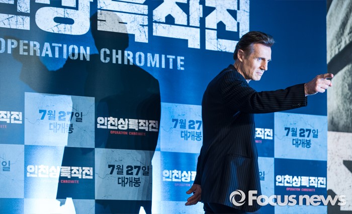 (서울=포커스뉴스) 13일 오전 서울 영등포구 콘래드 서울 호텔에서 열린 영화 '인천상륙작전' 기자간담회에 참석한 배우 리암 니슨이 포토타임을 갖고 있다.