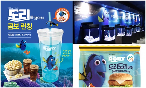 가장 먼저 소매를 걷어붙이고 '도리'를 두 팔 벌려 환영한 곳은 대형 멀티플렉스의 매점이었다. CGV·롯데시네마·메가박스 등 영화관 3사는 '도리를 찾아서' 개봉 직전 팝콘 세트를 사면 '도리'와 '니모' 캐릭터 굿즈를 증정하는 이벤트를 일제히 열었다. CGV는 컵을, 롯데시네마는 텀블러를, 메가박스는 램프를 증정했다.