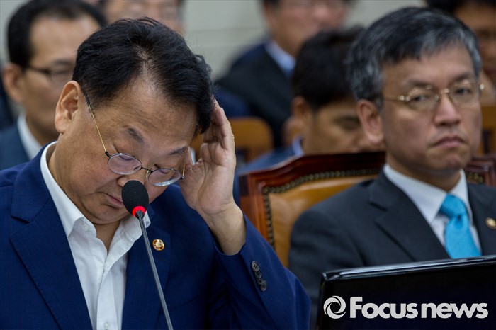 (서울=포커스뉴스) 유일호 경제부총리 겸 기획재정부 장관이 13일 오후 서울 여의도 국회에서 열린 '기획재정위원회 전체회의'에 참석해 의원들의 대우조선해양에 대한 수사자료와 회계법인의 실사보고서 제출을 요구하며 회의 시작을 미루자 난감해 하고 있다. 이날 기재위 여야 의원들은 대우조선해양과 관련된 자료를 보지 않고는 조선업 구조조정에 대한 추경예산 편성이 어렵다는 입장을 밝혔다.