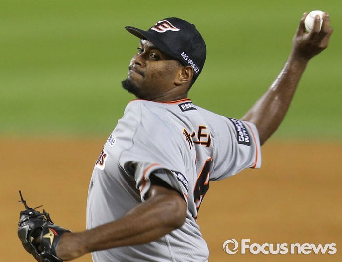 (서울=포커스뉴스) 13일 서울 잠실구장에서 열린 2016 프로야구 한화-LG 경기 7회말 무사 1루에서 한화 투수 카스티요가 등판해 투구하고 있다.