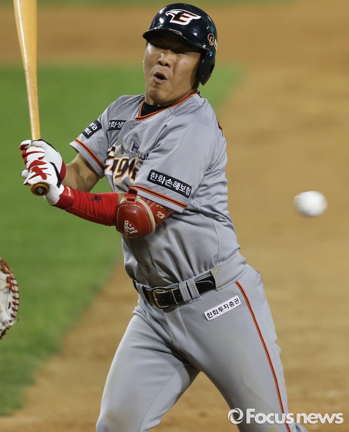 위협구에 몸 피하는 한화 정근우