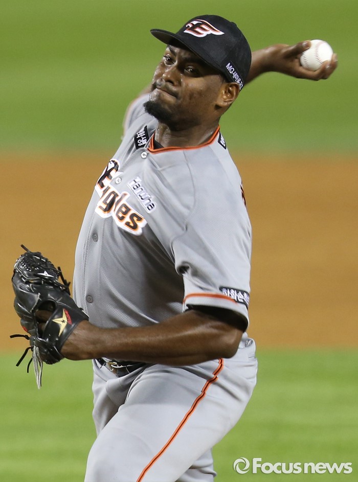 △ 투구하는 한화 투수 카스티요