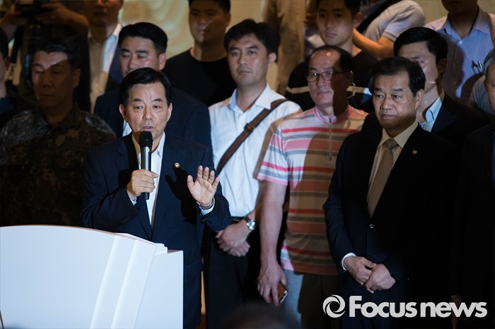 한 장관은 이에 "당연히 그럴 수 있다"며 "군민 분들의 감정이 많이 격앙돼 보이는데 정부가 앞으로 더 노력하겠습니다"라고 답했다.(서울=포커스뉴스) 한민구 국방부 장관이 13일 오후 서울 용산구 국방컨벤션센터에서 사드 배치에 항의 방문 중인 김항곤 성주군수 등 사회단체장 및 군민들과 대화하고 있다. 국방부는 이날 경북 성주군을 고고도 미사일 방어(사드·THAAD)체계 배치 지역이라고 공식 발표했다. 2016.07.13 성동훈 기자
