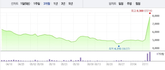 한빛소프트는 14일 오전 9시8분 현재 전 거래일 대비 20.61%(1350원) 상승한 7900원에 거래되고 있다. 한빛소프트는 12일과 13일 각각 3.92%, 29.96%의 상승폭을 기록했다.