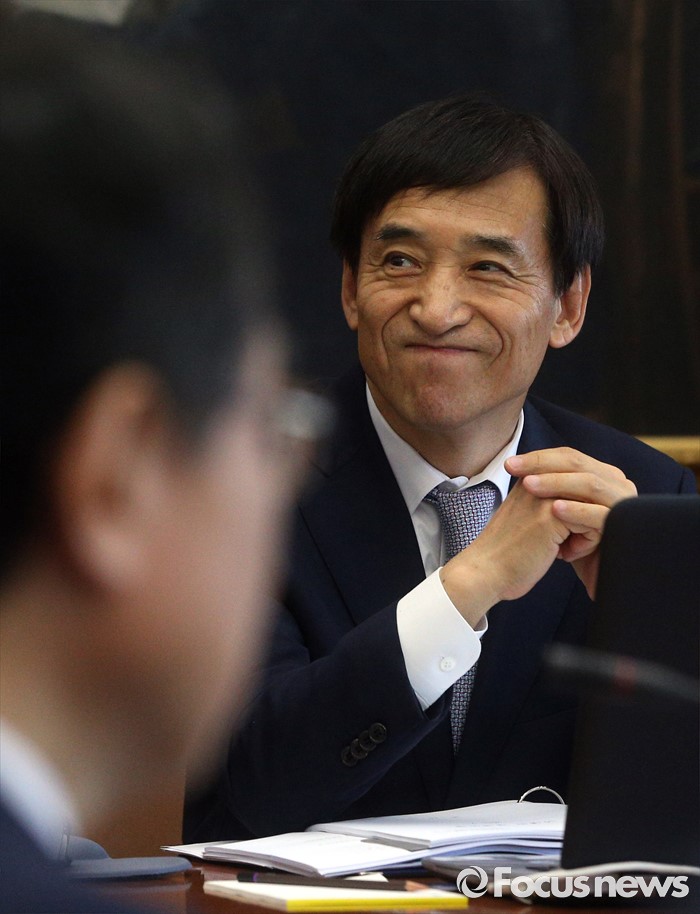 (서울=포커스뉴스) 14일 오전 서울 중구 한국은행에서 열린 제14차 금융통화위원회의에 참석한 이주열 한국은행 총재가 미소 짓고 있다.