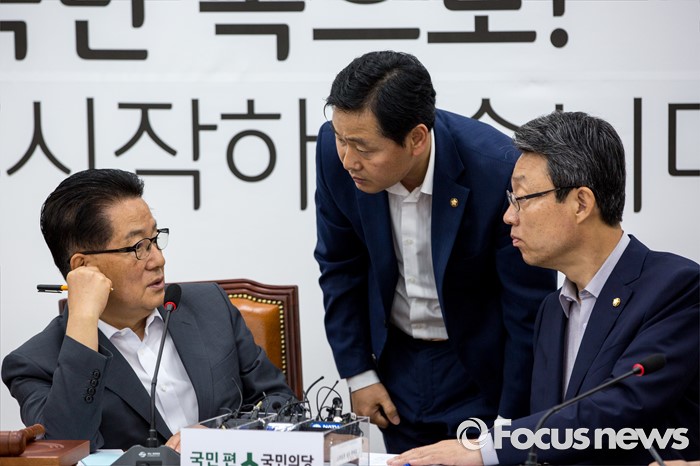 (서울=포커스뉴스) 박지원(왼쪽) 국민의당 비상대책위원장과 김성식(오른쪽) 정책위의장, 김관영 원내수석부대표가 14일 오전 서울 여의도 국회에서 열린 원내정책회의에 참석해 대화 하고 있다.