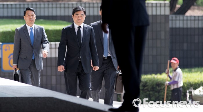 (서울=포커스뉴스) '주식 대박' 논란에 휩싸인 진경준 검사장이 14일 오전 서울 서초구 서울중앙지방검찰청으로 출석하고 있다.
