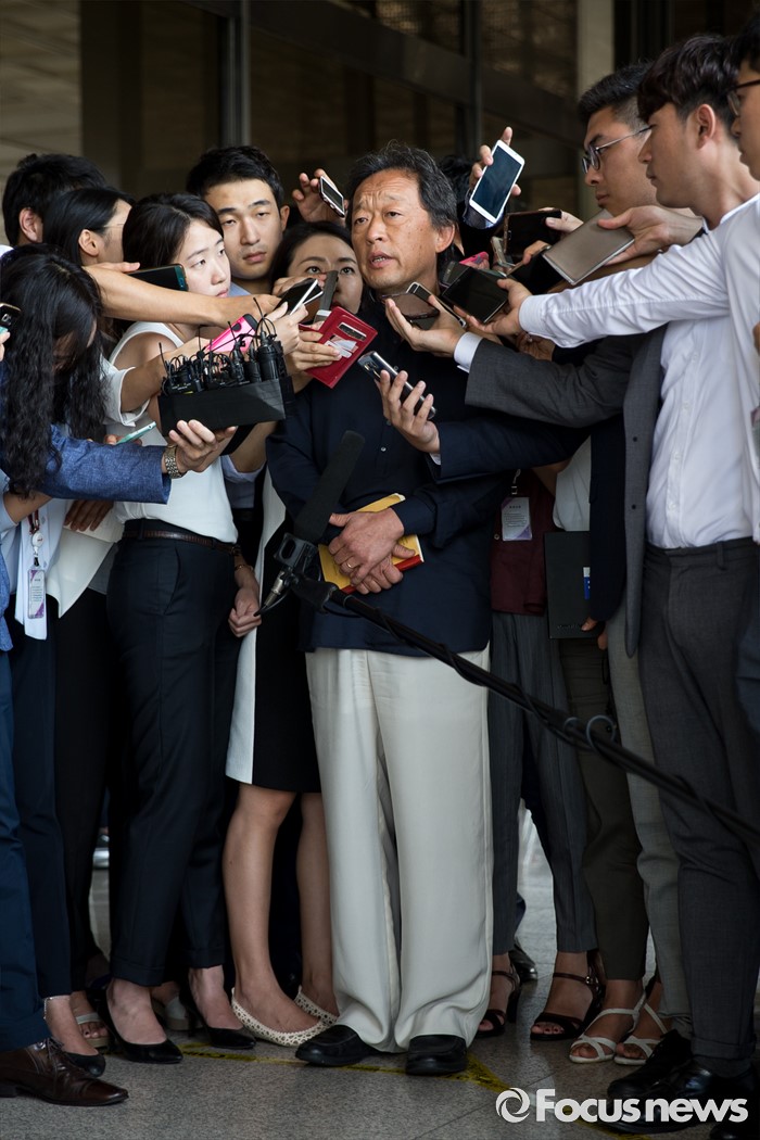 (서울=포커스뉴스) 박현정 전 서울시립교향악단 대표와 법적 분쟁을 벌이고 있는 정명훈 전 서울시향 예술감독이 검찰 조사를 위해 14일 오전 서울중앙지방검찰청으로 출석하기 전 취재진의 질문을 받고 있다.