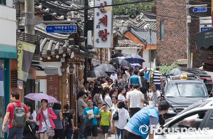 (서울=포커스뉴스) 초복을 사흘 앞둔 14일 오후 서울 종로구에 위치한 한 삼계탕 전문식당을 찾은 시민들이 줄을 서고 있다.