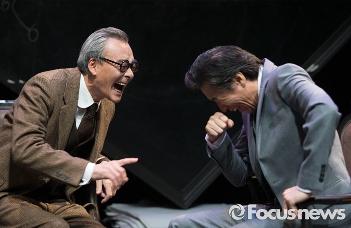 (서울=포커스뉴스) 14일 오후 서울 종로구 동숭아트센터 소극장에서 열린 연극 '코펜하겐' 프레스콜에 참여한 배우 남명렬(왼쪽)과 서상원이 주요장면을 시연하고 있다.