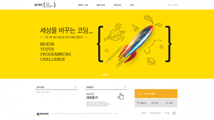 | △ ‘제1회 넥슨 청소년 프로그래밍 챌린지 대회 홈페이지.png |