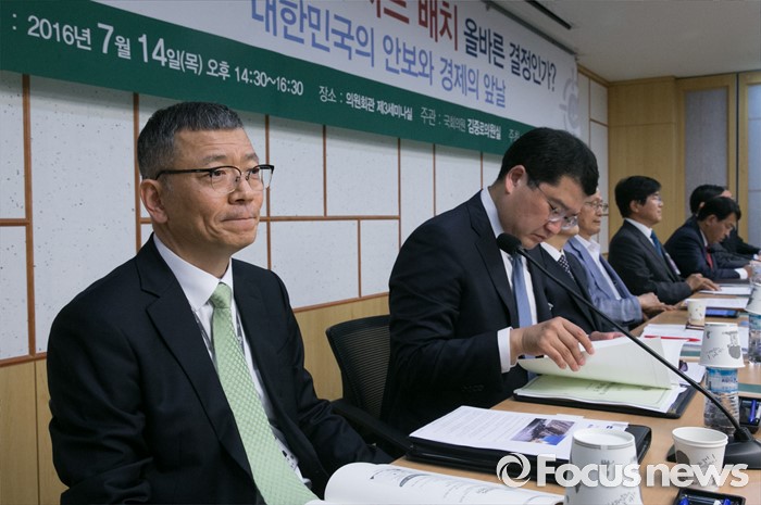 (서울=포커스뉴스) 14일 오후 서울 여의도 국회 의원회관에서 국민의당 주최로 열린 '국민의 동의없는 사드 배치 올바른 결정인가' 토론회에 참석한 류제승(왼쪽 첫번째) 국방부 국방정책실장이 자리하고 있다.