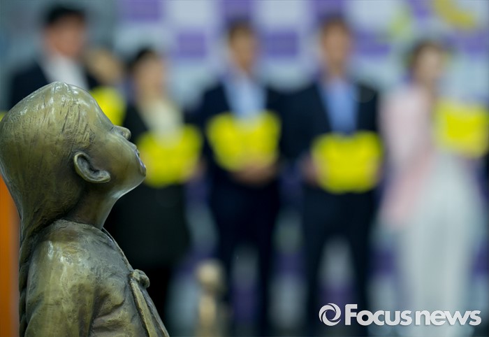 (서울=포커스뉴스)14일 오후 서울 여의도 국회 의원회관에서 열린 12·28 한일합의 무효화와 일본정부의 법적책임이행 촉구를 위한 '진실과 정의는 지지 않습니다' 전시회에 소녀상 관련 작품들이 전시되어 있다.