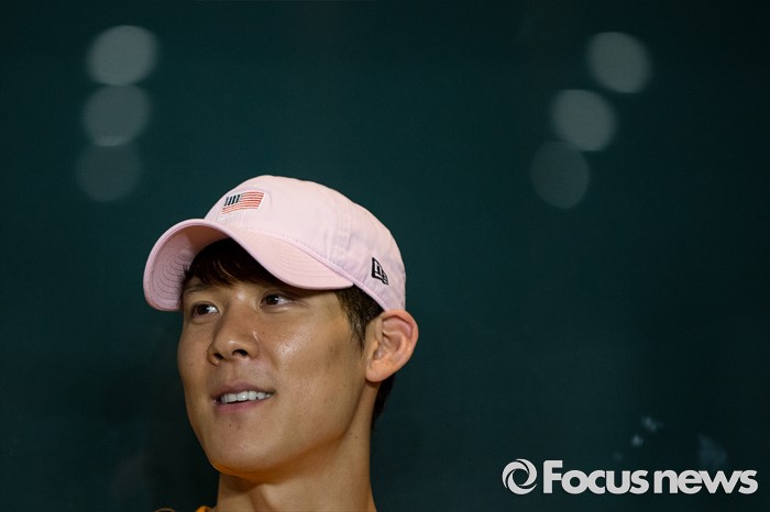 (인천공항=포커스뉴스) 리우 올림픽 출전이 확정된 '마린보이' 박태환이 호주 전지훈련을 마치고 14일 오후 인천국제공항을 통해 입국해 기자회견을 하고 있다.