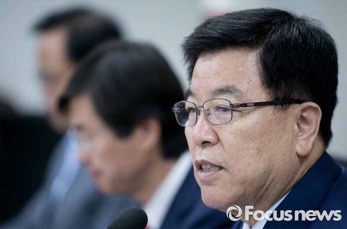 (서울=포커스뉴스) 15일 오전 서울 여의도 국회에서 열린 2016년도 추가경정 예산 당정협의에 참석한 김광림(오른쪽) 새누리당 정책위의장이 모두발언을 하고 있다,