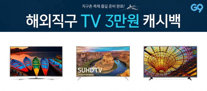 15일 G9에 따르면 G9에서 해외직구TV를 구입하는 고객은 제주와 도서지역을 제외한 전국 무료배송·무료설치 서비스와 함께 3만원 캐시백 혜택을 받을 수 있다. 캐시백은 별도 신청절차 없이 자동으로 적립되며, 횟수와 금액 제한이 없다.