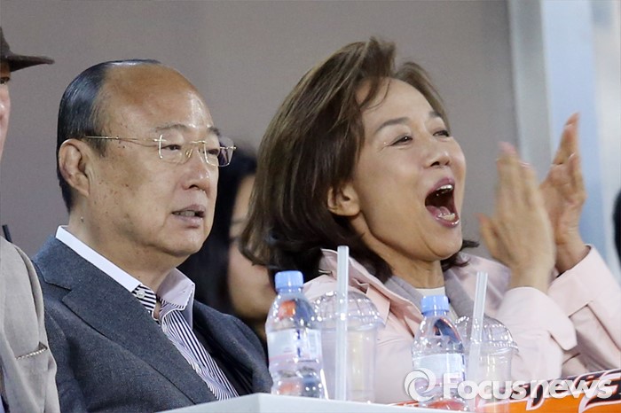 김 회장은 임직원들에게 “어려운 유통환경 속에서도 갤러리아가 차별화된 면세사업으로 우리나라 관광산업에 이바지해 그룹의 창업이념인 사업보국 정신을 이어가길 바란다”라고 당부했다.(서울=포커스뉴스) 1일 김승연 한화그룹 회장이 부인 서영민 여사와 함께 서울 잠실구장에서 열린 2016프로야구 개막전 한화-LG 경기를 관전하고 있다. 2016.04.01 우정식 기자2016.07.12 이가영 기자