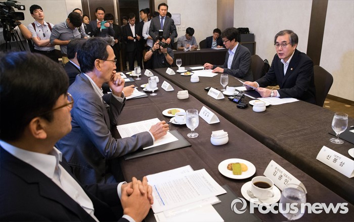 (서울=포커스뉴스) 15일 오전 서울 서초구 쉐라톤팔래스호텔에서 열린 '대형마트CEO 간담회'에 참석한 정재찬 공정거래위원장이 모두발언을 하고 있다 .