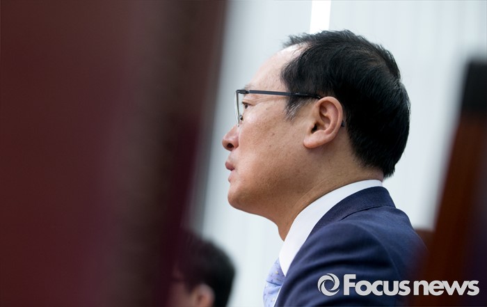 (서울=포커스뉴스) 15일 오전 서울 여의도 국회에서 홍영표 국회 환경노동위원장이 결산 표결 관련 입장을 전하는 기자간담회를 하고 있다. 이날 새누리당은 더불어민주당 소속 홍 위원장이 야당 단독으로 예비비 지출안 등을 처리한 것과 관련해 위원장 사퇴를 요구하며 모든 상임위 보이콧을 선언했다.