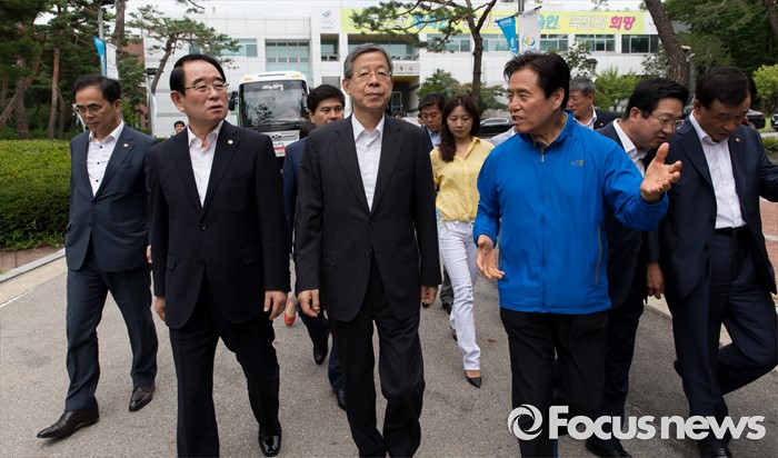 (서울=포커스뉴스) 15일 오전 서울 노원구 태릉선수촌에서 리우올림픽에 출전하는 선수들을 격려하기 위해 방문한 김희옥(가운데) 새누리당 혁신비상대책위원장이 최종삼 태릉선수촌장의 설명을 들으며 이동하고 있다.