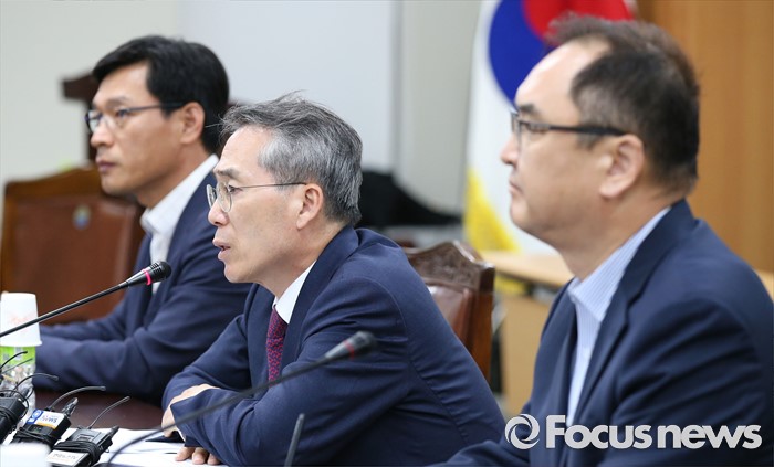 (세종=포커스뉴스) 박준성(가운데) 최저임금위원회 위원장이 16일 새벽 세종시 정부세종청사 고용노동부 전원회의실에서 열린 제14차 전원회의를 마치고 2017년도 적용 최저임금안은 7.3% 인상된 6470원에 의결했다고 밝히고 있다.