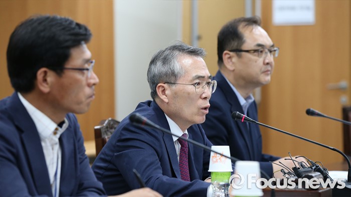 (세종=포커스뉴스) 박준성 최저임금위원회 위원장이 16일 새벽 세종시 정부세종청사 고용노동부 전원회의실에서 열린 제14차 전원회의를 마치고 2017년도 적용 최저임금안은 7.3% 인상된 6470원에 의결했다고 밝히고 있다.