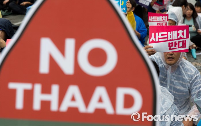 (서울=포커스뉴스) 16일 오후 서울 종로구 청계광장에서 사드한국배치반대전국대책회의 회원들이 사드 배치 결정 철회 평화행동을 하고 있다.