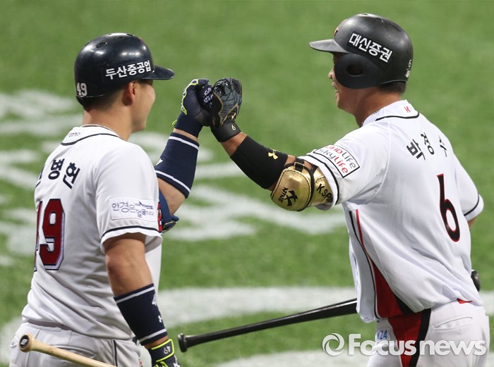 △ 박경수를 환영하는 민병헌