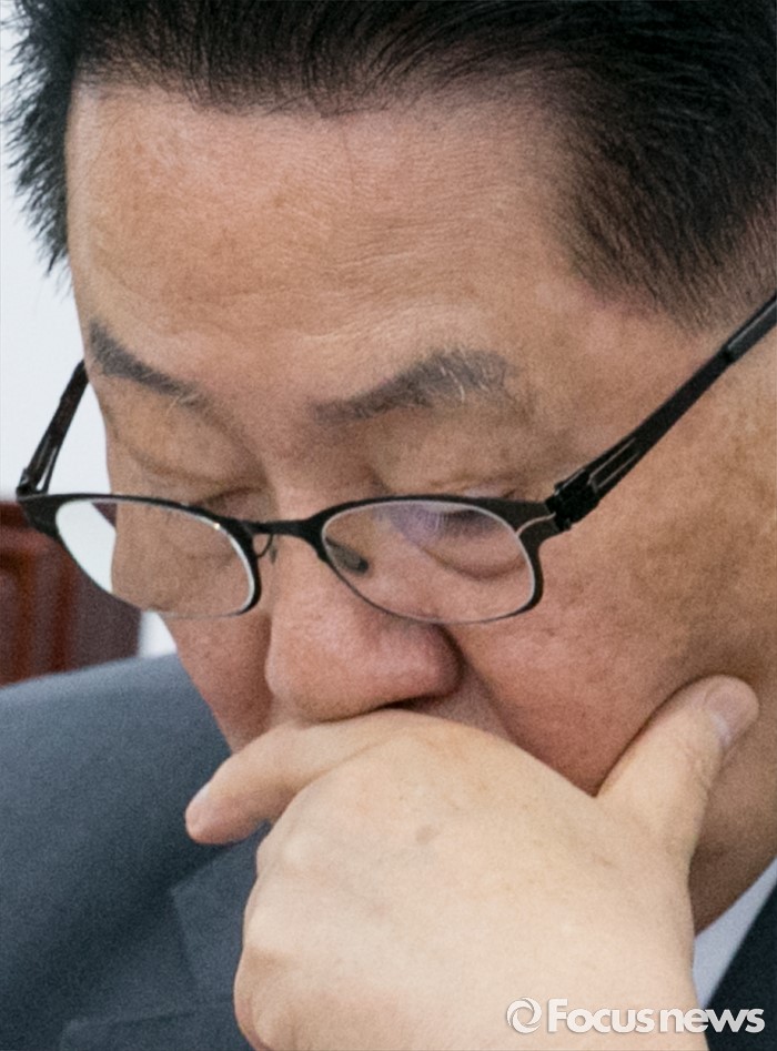 (서울=포커스뉴스) 18일 오전 서울 여의도 국회에서 열린 국민의당 비상대책위원회의에 참석한 박지원 비대위원장이 생각에 잠겨 있다.