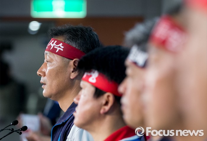 현대차와 현대중공업 노조는 오는 20일 울산 태화강 둔치에서 열리는 민주노총 주관의 '울산노동자 총파업대회'에 나란히 참가해 동시파업을 알린다. 이후 양 노조는 파업의 강도를 높여갈 것으로 보인다. 현대차와 현대중공업은 동시파업은 1993년 현대그룹 계열사 노조가 공동으로 실행했던 현대그룹노조총연맹(현총련)의 공동투쟁 이후 23년 만이다.(서울=포커스뉴스) 13일 오전 서울 여의도 국회 정론관에서 조선업종노조연대 등 관계자들이 일방적 구조조정에 반대하는 총파업 선언 기자회견을 하고 있다. 2016.07.13 박동욱 기자
