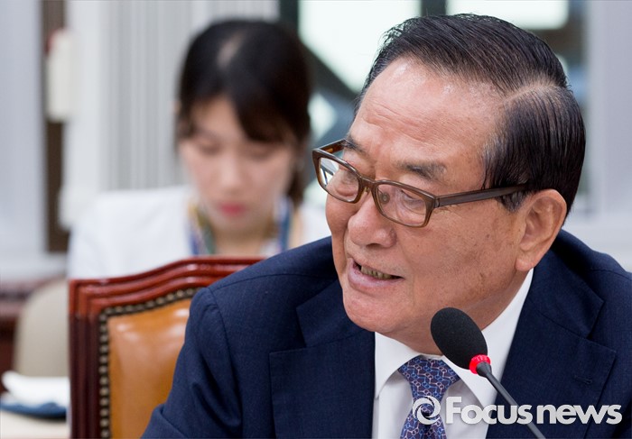새누리당의 총선 참패 이후에도 계파 갈등이 이어지고 있는 상황에는 "친박계에선 많이 자중했다"며 "비박계에서 당을 분열 시킨 것이지, 친박에서 누가 당을 분열시켰는가"라고 반문했다.(서울=포커스뉴스) 24일 오전 서울 여의도 국회에서 열린 외교통일위원회 전체회의에 참석한 서청원 새누리당 의원이 질의하고 있다. 2016.06.24 강진형 기자