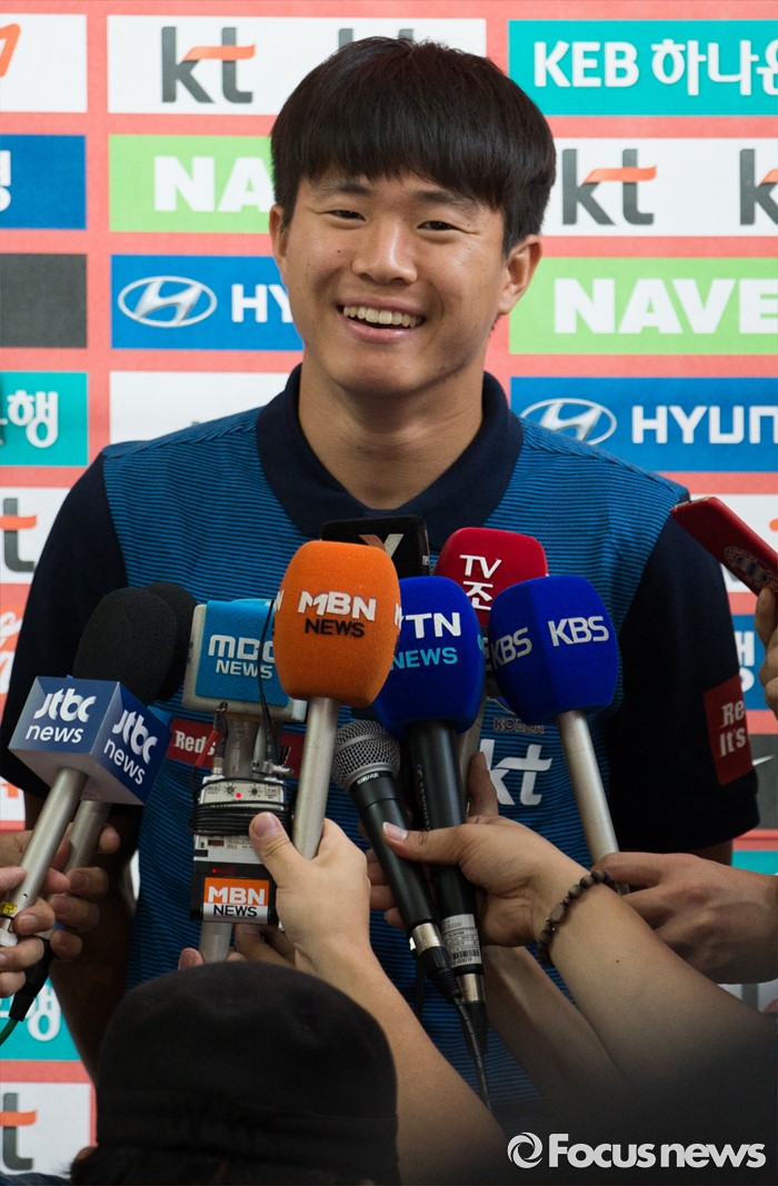 | △ 밝은 미소로 취재진 질문 답하는 권창훈 |